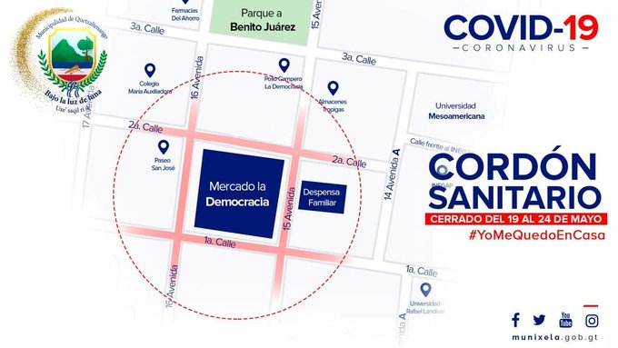 Juan Fernando López, alcalde de Quetzaltenango, informó que “por precaución”, ocho policías municipales y 12 personas a cargo del área administrativa del mercado La Democracia, fueron enviados a cuarentena.
