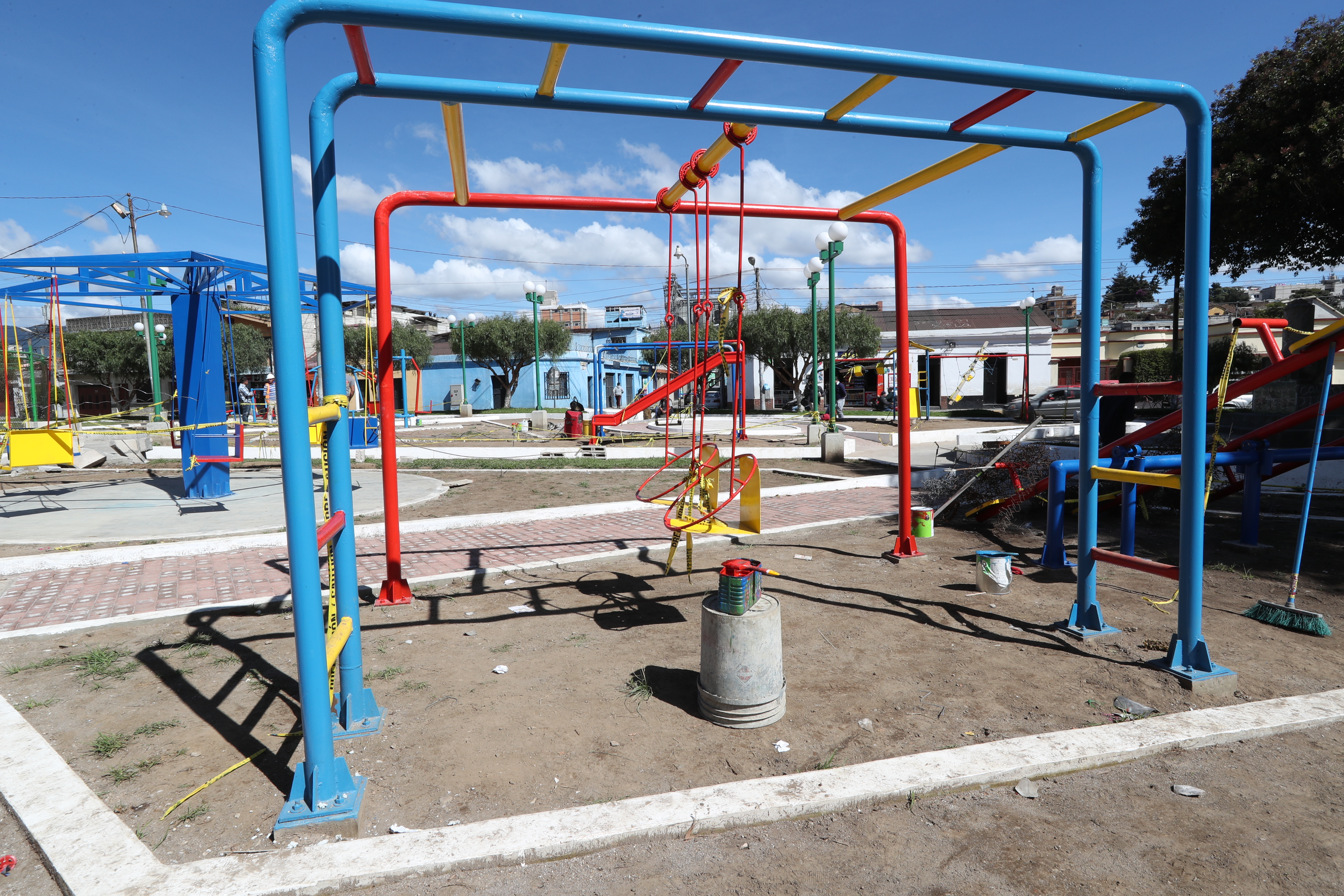 “El uno de noviembre estuvieron usando estos juegos, nosotros les advertimos que no están en uso, las personas no entienden y se molestan, incluso una señora a la que un compañero le dijo que no se podía usar, porque la pintura estaba fresca, le dio una cachetada”, dijo Fernando Macario, albañil de la obra y quien fue designado por la empresa A.R. Constructora para dar la información.