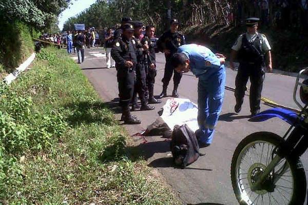 COATEPEQUE – Al parecer el occiso era perseguido por sus victimarios y al ser atacado repelió el ataque, pues se presume que debajo del cuerpo está el arma de fuego que portaba. Esto no se ha podido corroborar debido a que no se ha presentado el personal del Ministerio Público a examinar la escena del crimen.