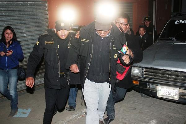 Los agentes de la PNC llegaron y lo sacaron de la casa que estaba rodeado de al menos 50 vecinos quienes pedían que lo sacaran.