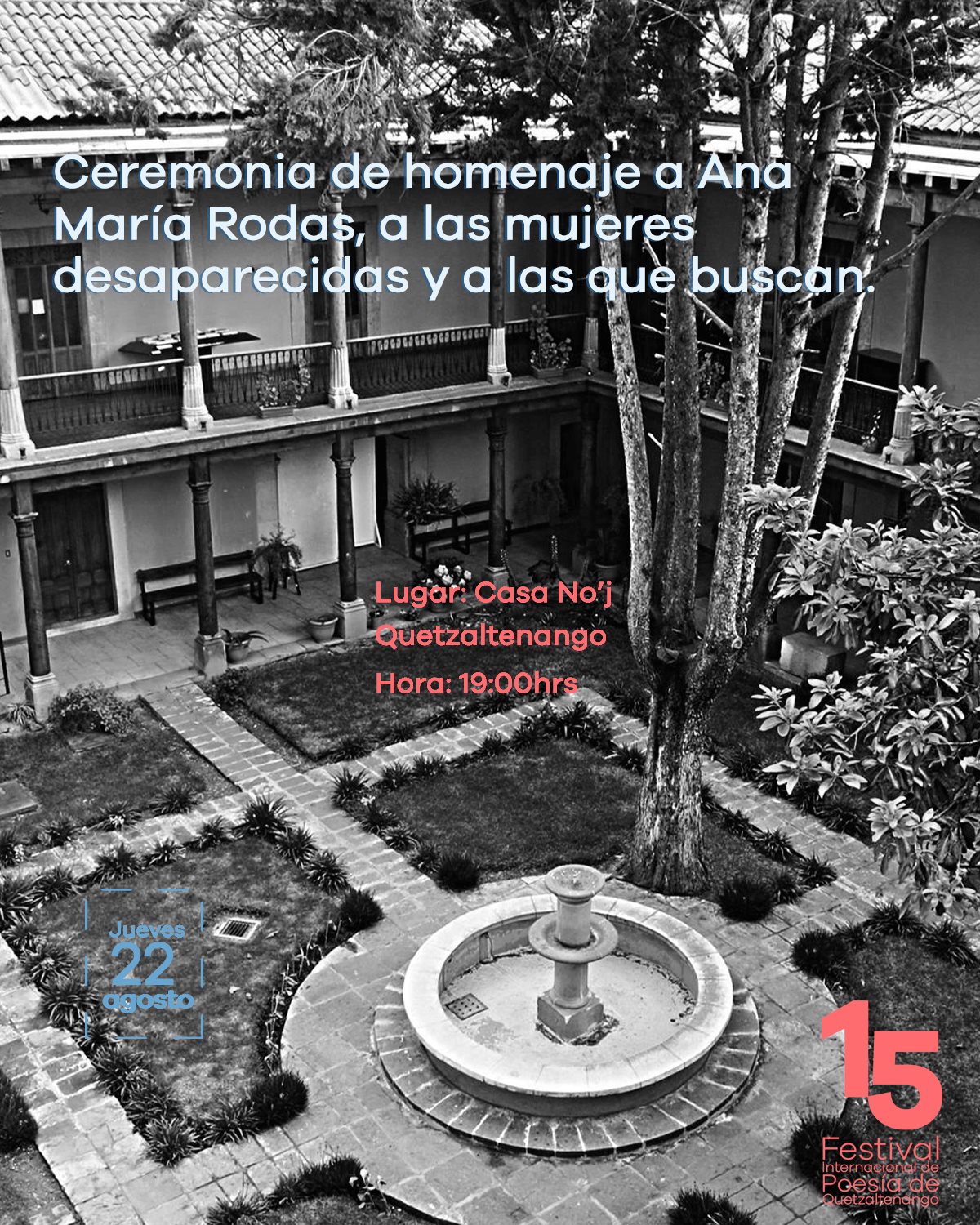 Para esta edición, el FIPQ reconocerá el talento de la poeta guatemalteca Ana María Rodas y ofrecerá al público quetzalteco la presentación gratuita de la Orquesta Sinfónica Juvenil Femenina y Coro Alaide Foppa.