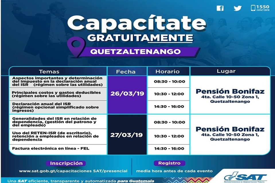 Además de la capacitación sobre la factura electrónica, la SAT ofrece cuatro temas más a los cuales la población de Xela también puede acceder de forma gratuita.