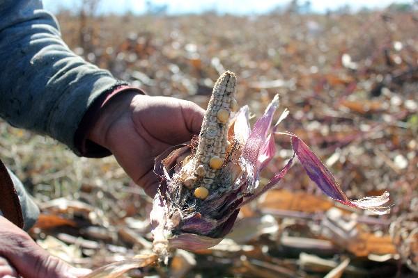 Los afectados indicaron que las mazorcas de maíz no crecieron; algunas tienen pocos granos, y otras, ninguno.