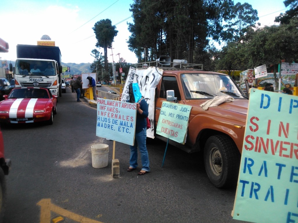Oswaldo Ochoa, “El Caminante”, aseguró que la manifestación y el paro es con el objetivo de llamar la atención del pueblo y hacer reflexionar sobre los últimos acontecimientos, porque el Congreso favoreció al presidente Pérez Molina.