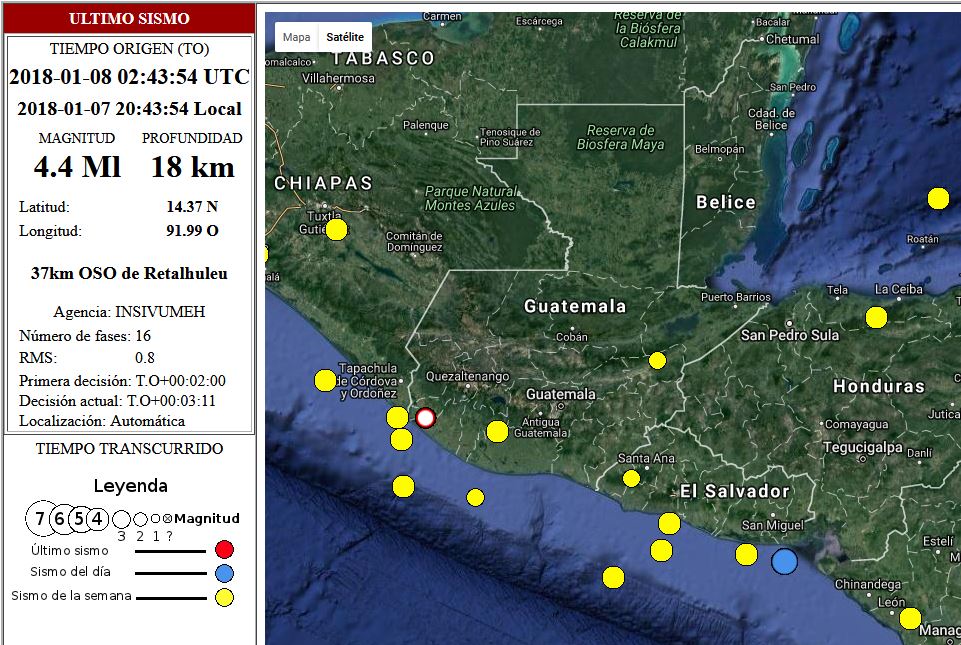 El Instituto Nacional de Sismología, Vulcanología, Meteorología e Hidrología (Insivumeh) reportó un sismo en el occidente y sur occidente del país