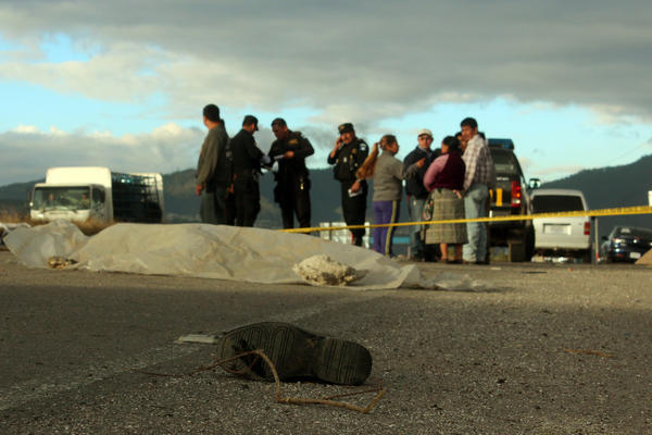La Policía Nacional Civil indicó que el piloto del bus continuó su marcha, pero que detuvo su unidad y la abandonó a unos tres kilómetros del lugar donde quedó el cadáver de Sapón Sajché. El chofer huyó corriendo.