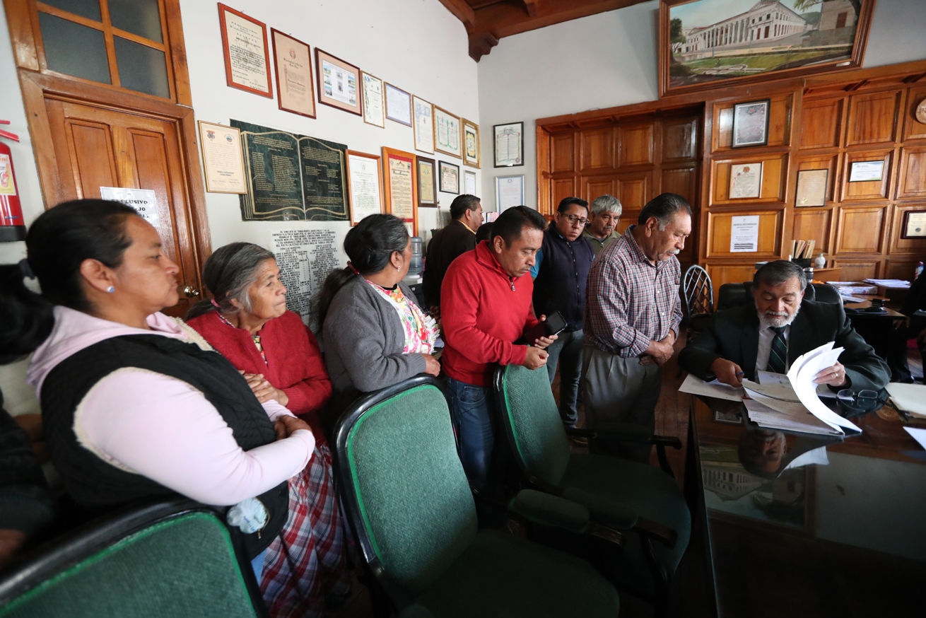 Representantes de los vecinos acudieron este lunes 27 de mayo de 2019  a la Municipalidad de Quetzaltenango para pedirle al alcalde que se “agilicen” los trámites para completar el proyecto y que se pavimente el camino en su totalidad.