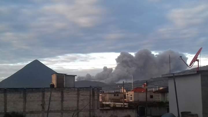 Según la Coordinadora Nacional para la Reducción de Desastres (Conred) una fuerte explosión causó que las partículas de ceniza del volcán fueran expulsadas a cinco mil metros sobre el nivel del mar.