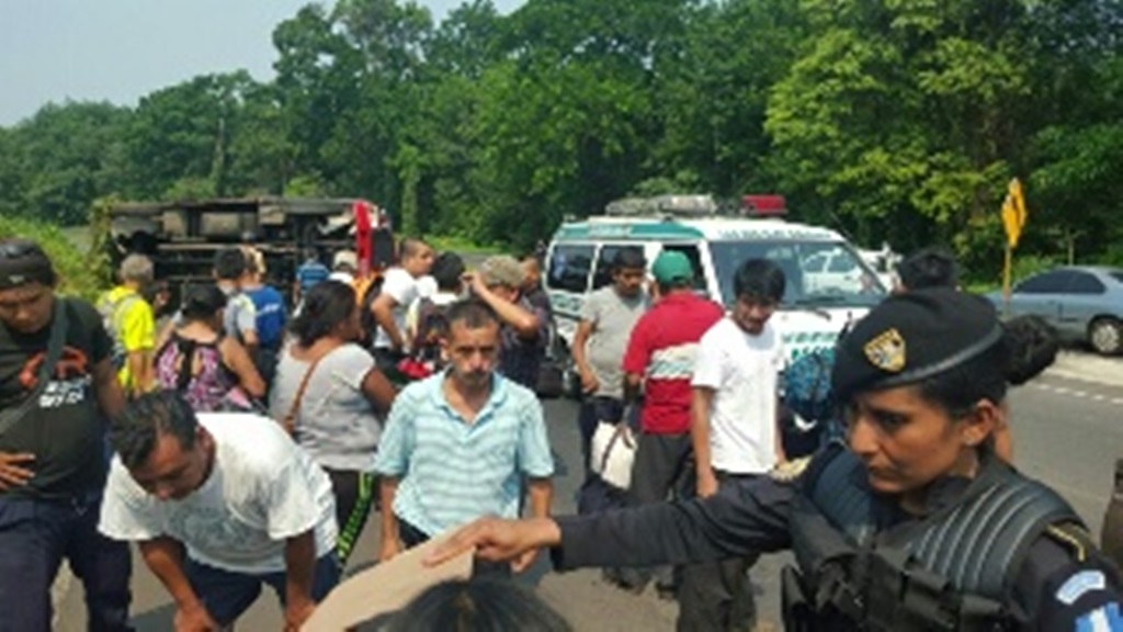 Al menos 15 pasajeros resultaron heridos este domingo, luego que el autobús de los transportes Golondrina volcara en el kilómetro 203 ruta al suroccidente, Colomba, Quetzaltenango, informaron los Bomberos Municipales Departamentales (BMD).