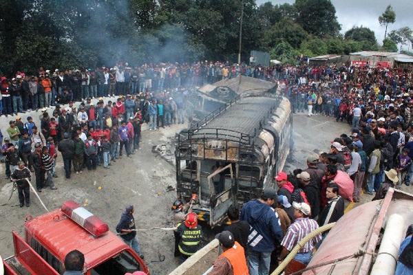 El bombero voluntario Carlos Santizo informó que por el choque se incendiaron los dos transportes, por lo que trabajaron al menos una hora y media para sofocar las llamas.