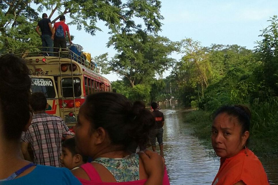 Además, el río Granada también se ha desbordado y ha anegado la carretera, por lo que impide el acceso a Champerico por vía terrestre.