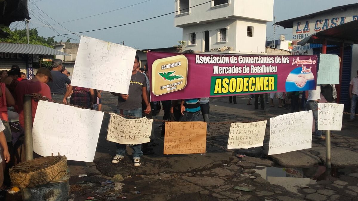 Vendedores del mercado La Terminal, en la zona 4 de la cabecera de Retalhuleu, suspendieron labores este miércoles para efectuar una manifestación en la que piden a las autoridades municipales que se les brinde seguridad.