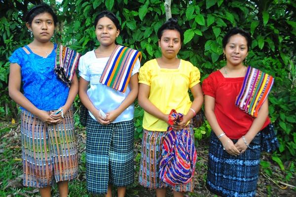 Cuatro señoritas participan en la elección de la Humial Tinimit Re Apoxab' (Hija del pueblo) de San Sebastián, Retalhuleu, que se llevará a cabo el próximo 8 de enero.