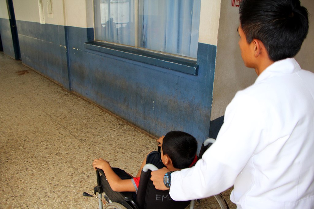 Menor que fue agredido en El Asintal es ingresado al Hospital Nacional de Retalhuleu. (Foto Prensa Libre: Rolando Miranda)