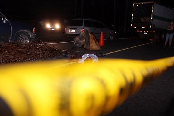 Un hombre murió atropellado en la entrada a Retalhuleu, su cadáver quedó tirado a media de la calzada. (Foto Prensa Libre: Rolando Miranda)<br _mce_bogus="1"/>