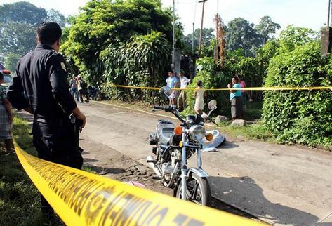 Autoridades resguardan el lugar donde murió baleado el maestro José Fabián Carpio, en San Sebastián. (Foto Prensa Libre: Rolando Miranda)