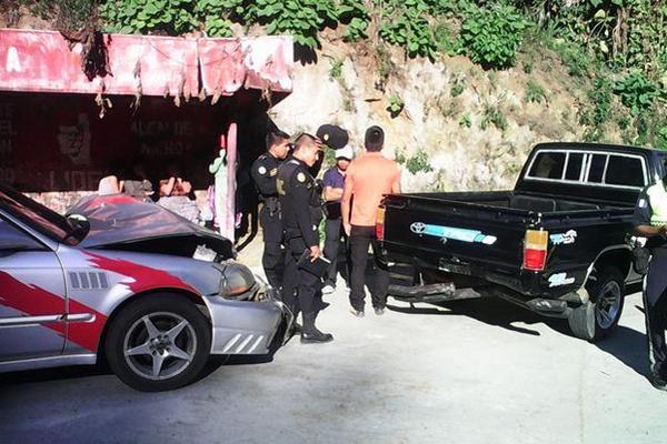 SUMPANGO SACATEPÉQUEZ.- Un automóvil particular que se dirigía a San Marcos chocó con la parte trasera de un picop cuando este frenó de repente para virar, y eso hizo que el primero no tuviera tiempo de frenar.