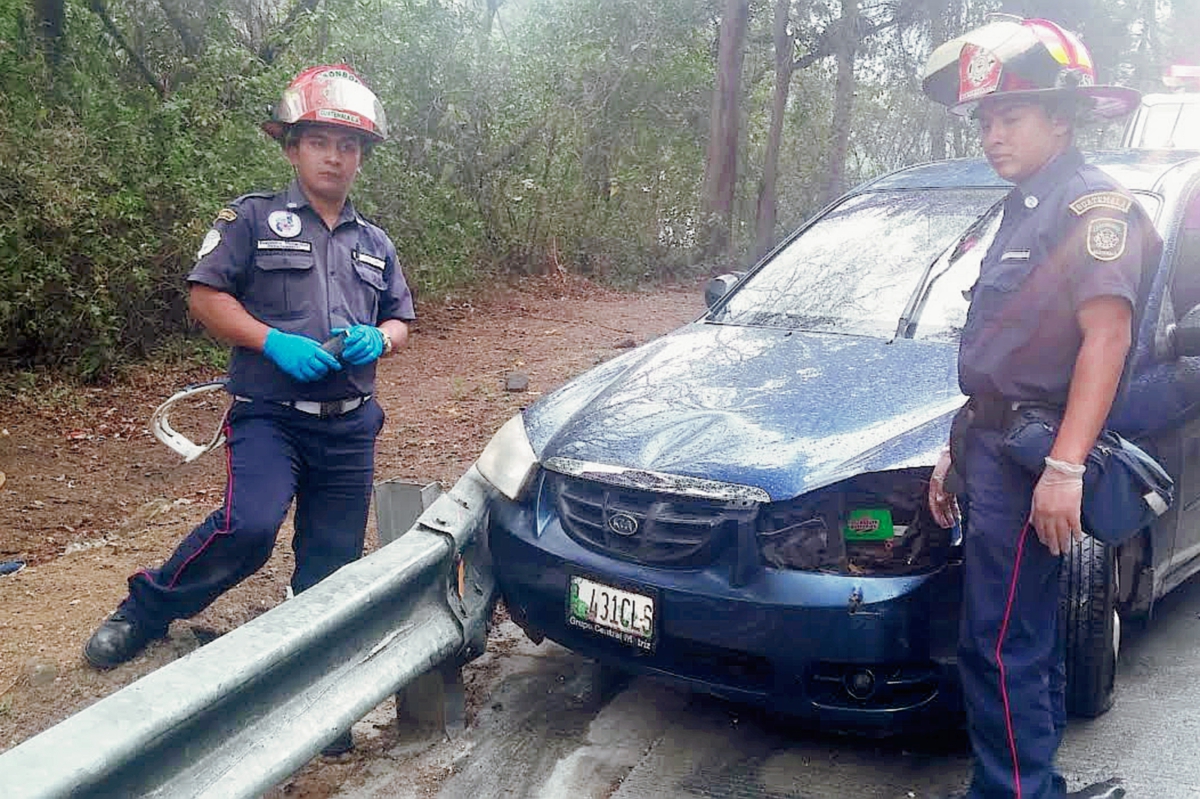Tres personas resultaron heridas este miércoles en una cuádruple colisión en el kilómetro 38, bajada de Las Cañas, Antigua Guatemala, Sacatepéquez, informaron Bomberos Municipales Departamentales.