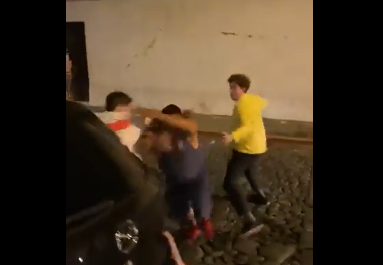 En la grabación de ocho segundos se ve cuando cuatro personas se enfrentan a golpes por causas que se desconocen.