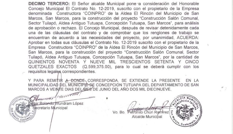 En la actualidad en Tuilapó se construye un salón comunal con fondos municipales, la inversión será de Q599 mil 375 mil y la obra está a cargo de la empresa Coinpro.