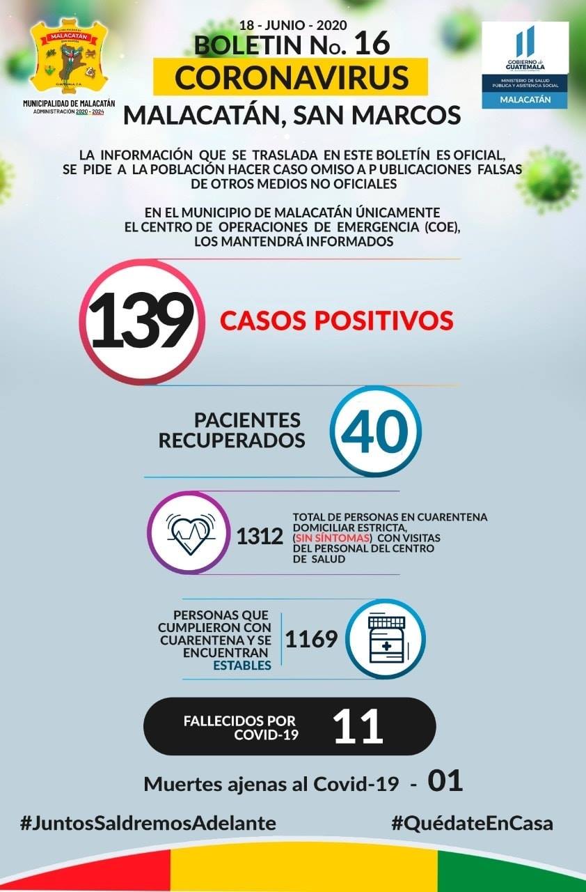 El Área de Salud de San Marcos informó a mitad de semana que Malacatán tiene 139 casos de covid-19.