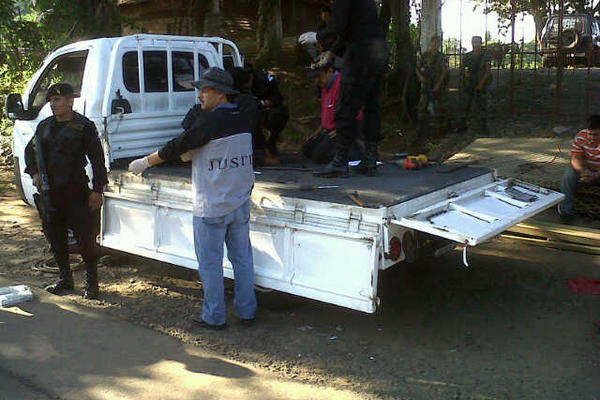 El vehículo era custodiado por el picop 953SKG donde que transportaba a Dario Otoniel Paredes Mazariegos y Rómulo Tul Caal, quienes en la base de datos de la Policía Nacional Civil aparecen con antecedentes por portación ilegal de arma de fuego.