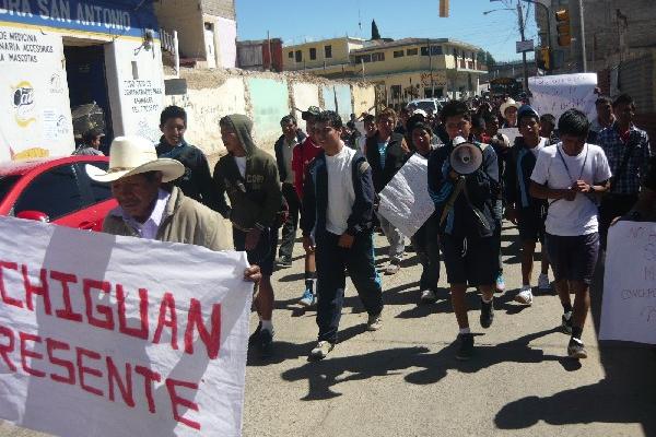 Unas 600 personas, entre padres de familia y estudiantes de la Escuela Normal de Educación Física de la cabecera de San Marcos, se manifestaron ayer con pancartas en rechazo al nuevo Bachillerato de Educación Física autorizado por el Ministerio de Educación (Mineduc).