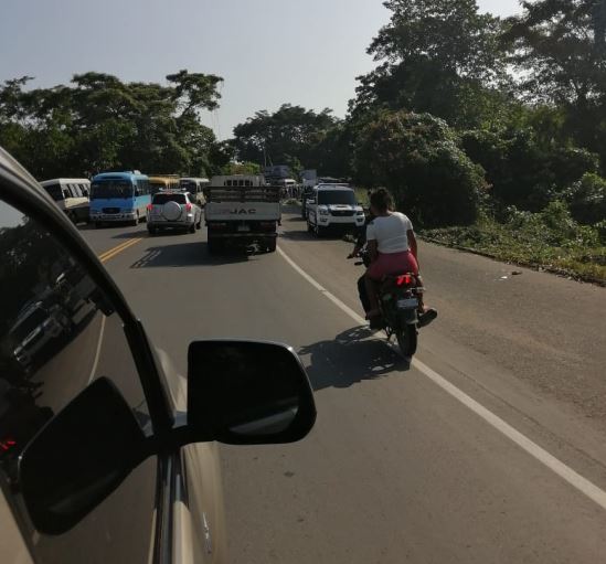 Largas filas de vehículos se formaron en el lugar de la manifestación, por lo que la actividad comercial se ve afectada.