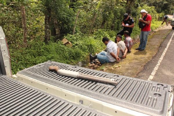 Arnoldo Gálvez, subcomisario de la Policía Nacional Civil (PNC), dijo que a los tres hombres se les incautó una mochila con gorros pasamontañas y una escopeta calibre 12.