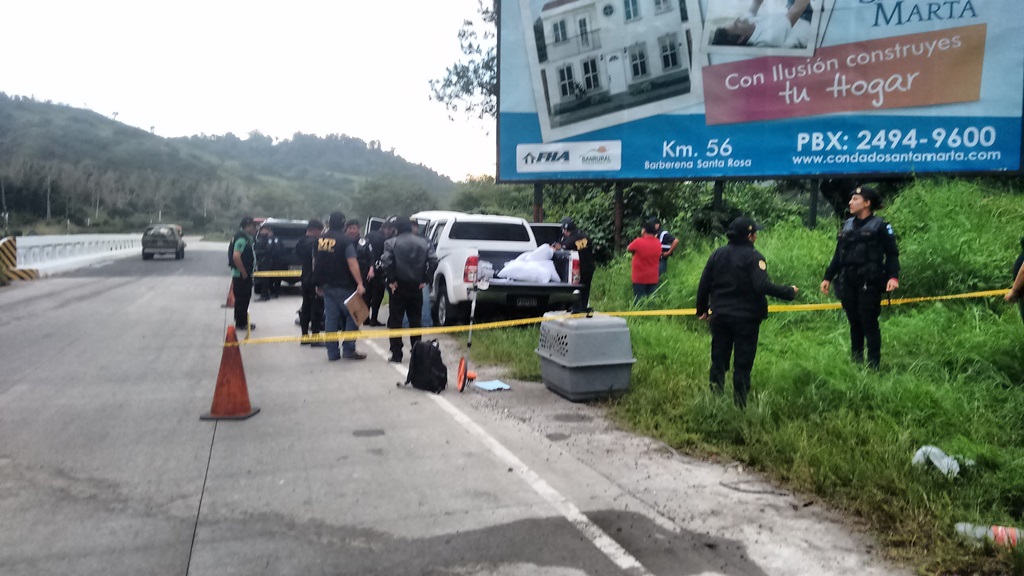 Agentes indicaron que hasta el momento peritos del Ministerio Público revisan detenidamente el picop donde viajaban los presuntos narcotraficantes.