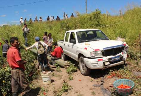 El choque con el poste evitó que la tragedia fuera mayor, pues había unos 60 trabajadores en la tomatera.