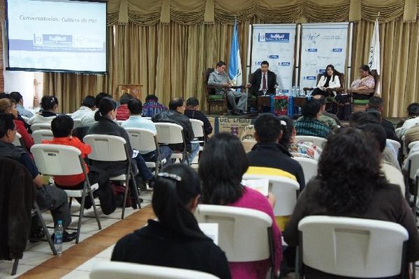En esta actividad, orientada a las personas de todos los sectores sociales que convergen en el departamento, se abordaron los temas caracterización del Estado guatemalteco después de la firma de los acuerdos de paz, los responsables de la cultura de paz, el papel de los medios de comunicación, las iglesias y la sociedad civil, entre otros.
