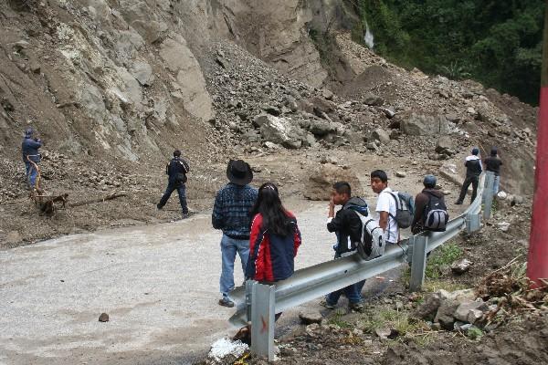 Un nuevo derrumbe cayó ayer sobra la ruta de la cabecera de Sololá hacia Panajachel, en el lugar conocido como La Catarata. José Par, de la Unidad Ejecutora de Conservación Vial, dijo que el desprendimiento de tierra y piedras mide unos cien metros de largo por 30 de ancho y 10 de alto, y que será imposible limpiar el área en estos días.