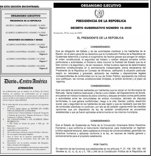 Esto lo dio a conocer en un mensaje presidencial brindado a las seis horas de este día, después que se publicara el decreto gubernativo 10-2020 en el diario oficial.