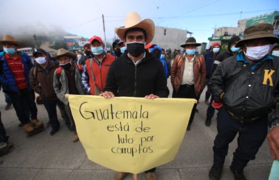 Con pancartas y con consignas como “renuncien” los manifestantes mantiene tapada la vía y afirman que no negociarán, pues demandan la renuncia del presidente Giammattei y de la Junta Directiva del Congreso, entre otros funcionarios.