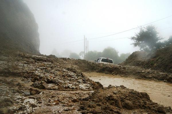 Los ocupantes de un picop se salvaron de morir luego que les cayó un derrumbe en el kilómetro 147 de la ruta entre Sololá y Concepción.