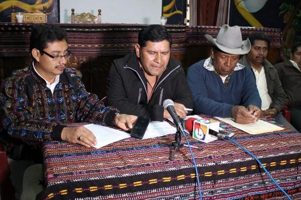 Alcaldes indígenas de Sololá anuncian a medios de comunicación el estado de alerta por secuestro de taxista. (Foto Prensa Libre: Édgar R. Sáenz)