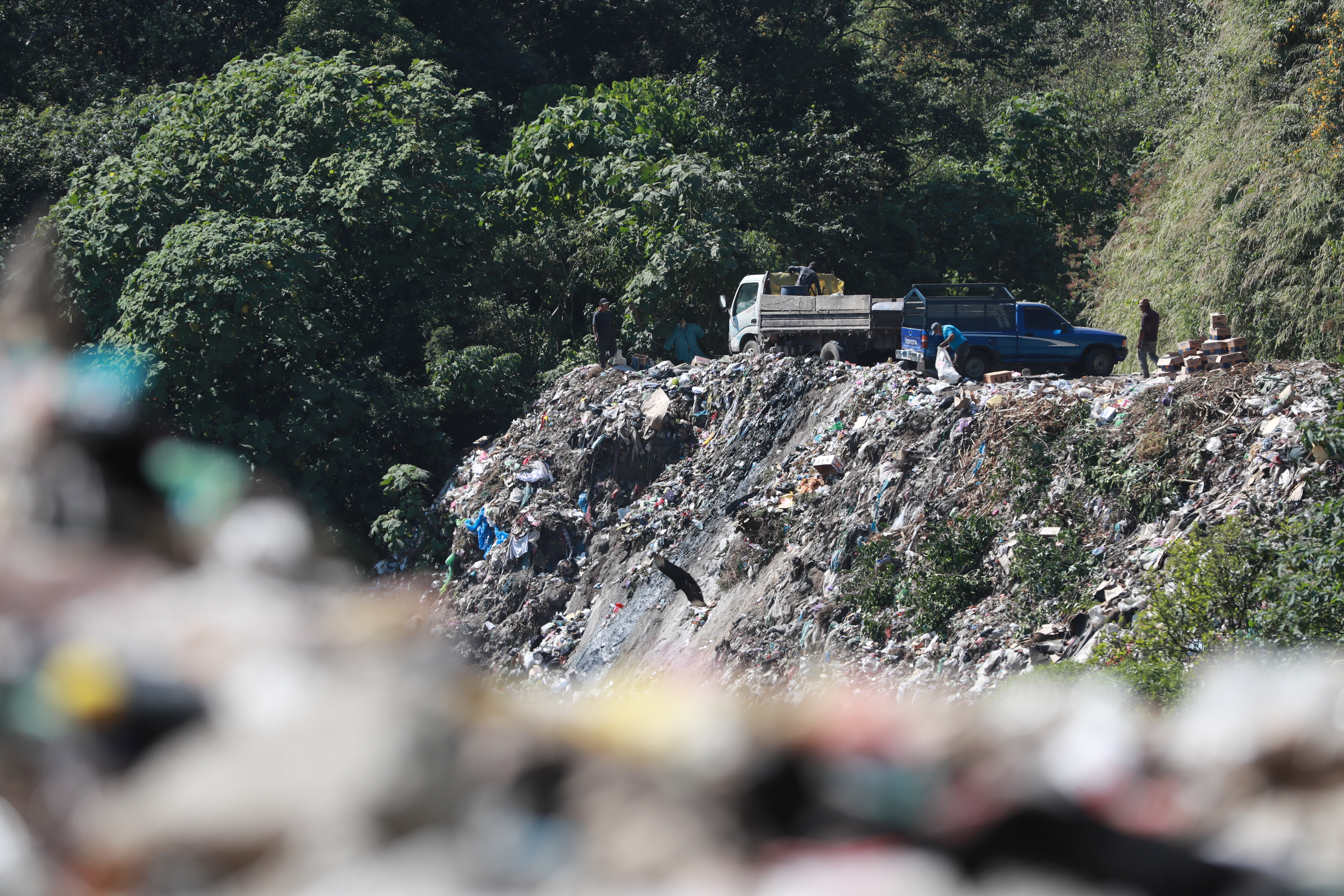 Durante la visita que Prensa Libre efectuó a la zona se observó cómo los empleados municipales lanzaron al barranco neumáticos de vehículos, botellas de vidrio, desechos de plástico, duroport y una gran cantidad de basura que produce la industria turística y la población.