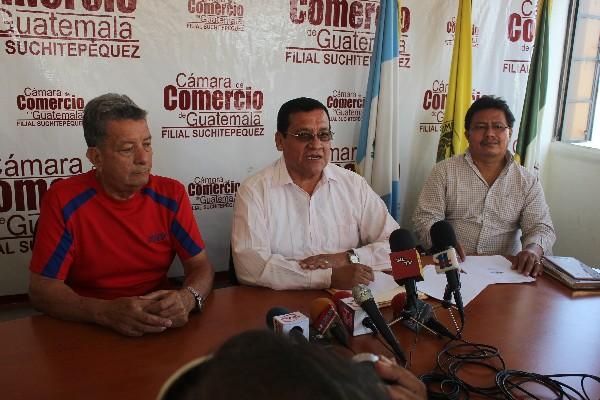 Delegados de la Cámara de Comercio filial Suchitepéquez, en conferencia de prensa.