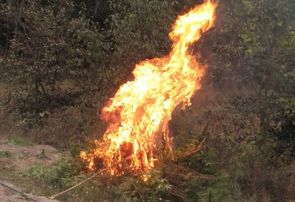 Explica que un sector fueron destruidas 76 mil 452 matas, cuyo cultivo, producción y comercialización es prohibida en el país; mientras que, en otra área se erradicaron 121 mil matas.
