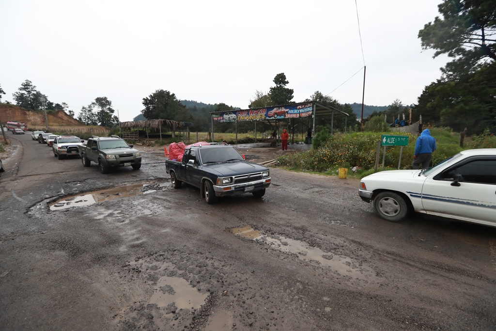 El tramo en mal estado consta de 19.9 kilómetros de Cuatro Caminos a Pologuá, Totonicapán. (Foto Prensa Libre: Mynor Toc)