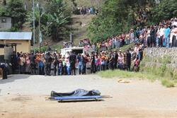García Godínez clamaba por clemencia y aseguraba ser inocente, ante la mirada de vecinos y los agentes de la PNC que no pudieron intervenir, ya que podían ser agredidos por los pobladores.