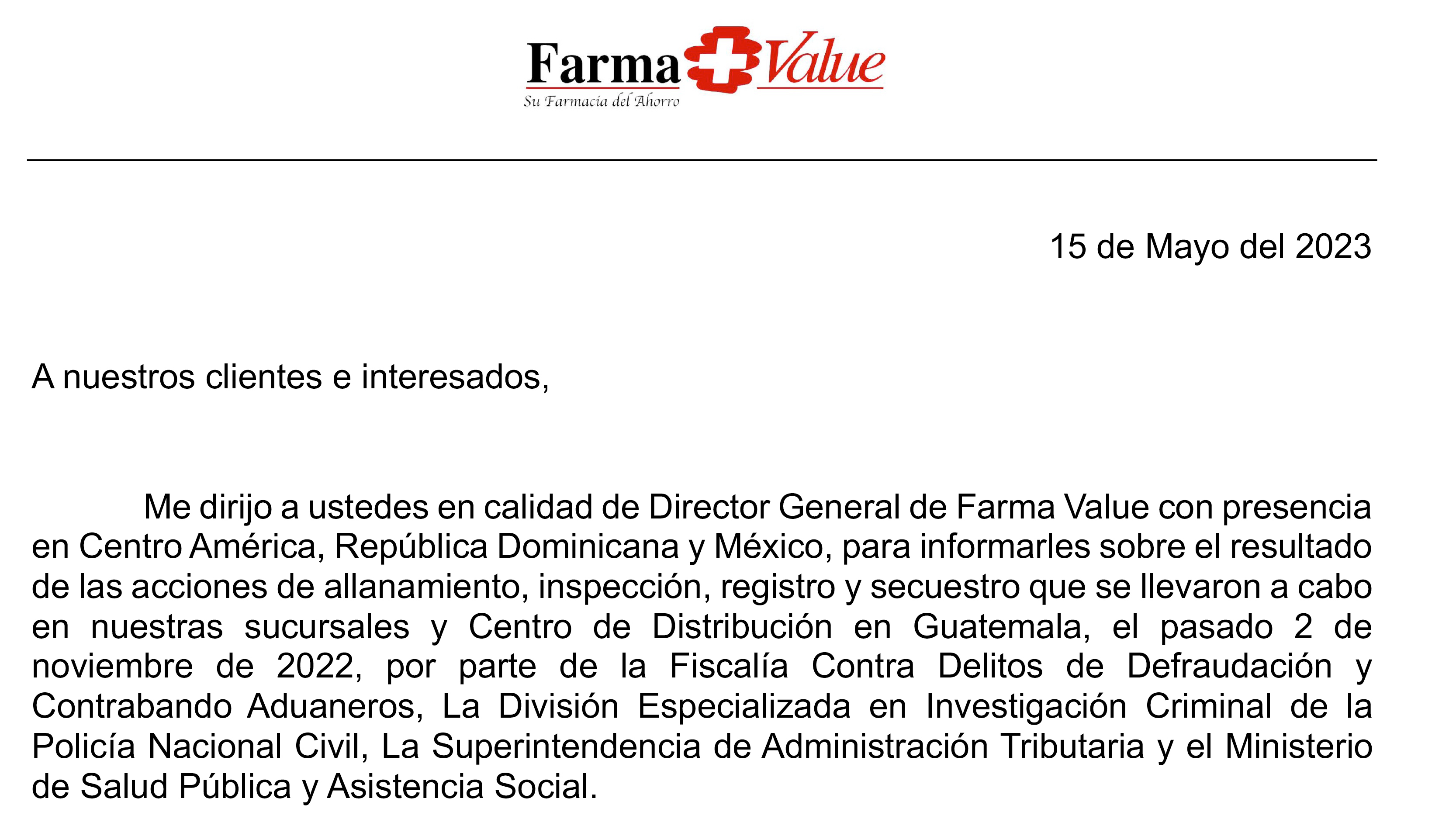 Comunicado a medios por allanamiento