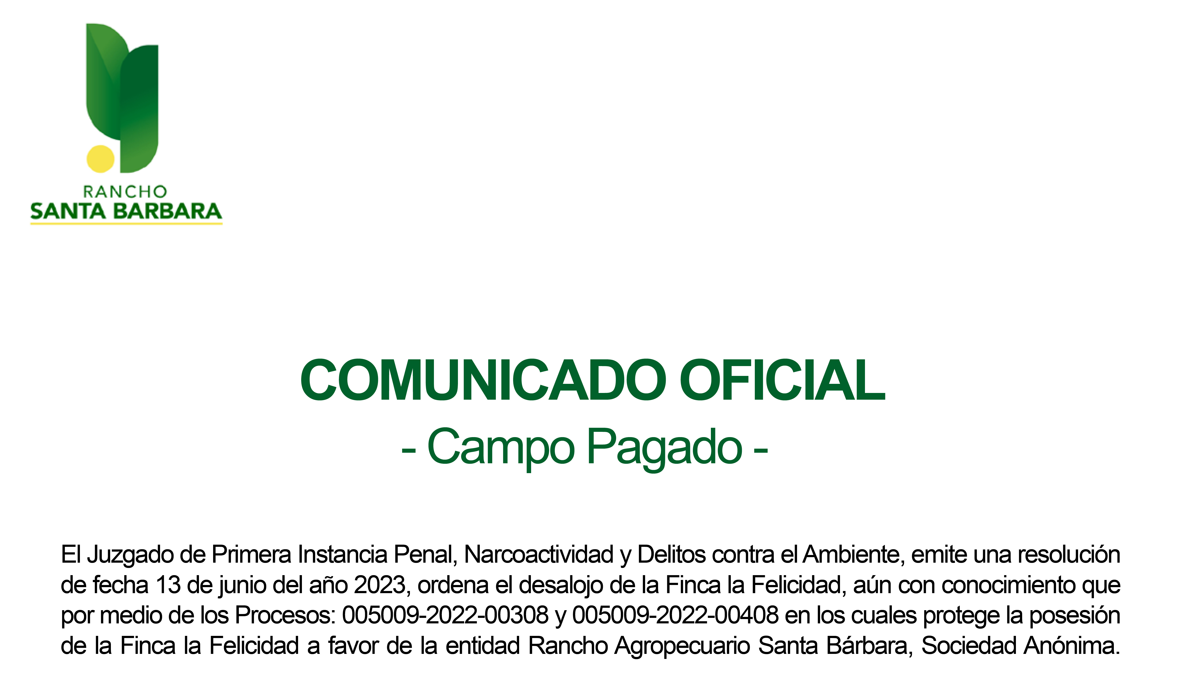 Comunicado de Prensa Rancho Santa Bárbara