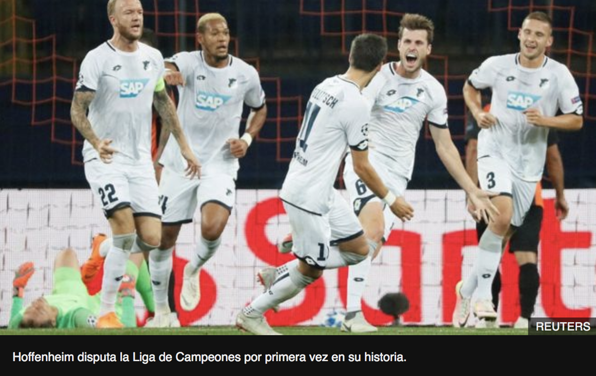En menos de 20 años el Hoffenheim pasó de la quinta división del fútbol alemán hasta la máxima vitrina del fútbol de clubes en Europa, donde quedó emparejado junto al Manchester City inglés, uno de los equipos más ricos del mundo.