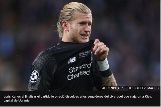 Dos de los goles del club español se lograron en gran parte debido a errores de Karius, quien lloró una vez finalizado el partido y ofreció disculpas a los aficionados de su equipo en el estadio.