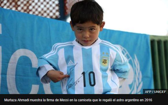 La imagen de Murtaza Ahmadi con una bolsa de plástico celeste y blanca con el nombre de Messi y el número 10 en la espalda tuvo tanto impacto en internet que el entonces niño de cinco años pudo conocer al astro argentino.