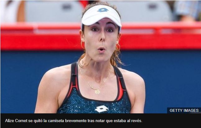 Tras volver de una pausa de 10 minutos para refrescarse y cambiarse la ropa, la tenista Alizé Cornet se dio cuenta de que se había puesto la camiseta al revés. Y sin mayor preocupación, en medio de la pista se la quitó para ponérsela correctamente.