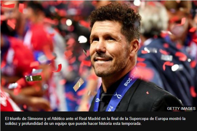 Las palabras del técnico de “los colchoneros”, Diego Simeone, en la previa de la Supercopa de Europa, reflejando el bueno momento del equipo, quedarían incluso más patentes tras la victoria por 4-2 frente al Real Madrid, la primera derrota del conjunto merengue en una final internacional desde el año 2000.
