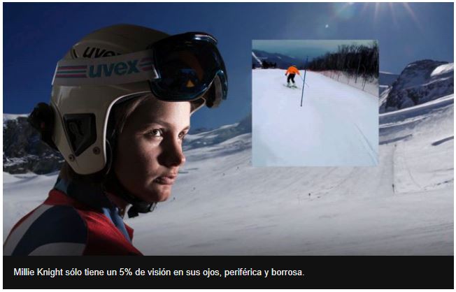 Pero no podrá ver la pista por dónde bajará a toda velocidad, Millie es oficialmente ciega.